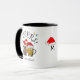 Stylish Christmas Three Cheers Beers monogram coffee mug with CUSTOMIZABLE TEXT. Simple, stylish beer paper plates, showing three beers and CHEERS! at the top in curved text against a plain white background - each drink adorned with a festive Santa hat and lights for the Christmas season. At the bottom, there is CUSTOMIZABLE text which can be changed to your name, etc. Ideal festive gifts for private parties, public celebrations, Christmas beer festivals, Christmas office parties, etc. Other versions, including national flags, beer festivals, Oktoberfest, etc., are also available. Matching items can be found in the CHEERS AND BEERS Collection by Berean Designs.