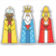 Beautiful Christmas three kings dressed in turquoise, red and yellow.