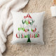 Christmas throw pillow which reads A very merry Christmas in Christmas Tree design. Trendy home decor for the holidays.