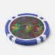 This awesome set of poker chips features a fun festive photograph of some peacock feathers taken using macro photography. Artificial colouring techniques have been used to emphasize the detail. The result is a purple tinsel effect with the eyespots showing shades of red and green.