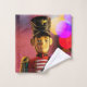 Christmas toy soldier figurine SlipperyJoe gay pride gifts LGBTQIA colourful bokeh lights background vibrant coloured red jacket uniform gold buttons shoulder epaulets cartoonish face artistic black hat gold eagle emblem pink purple yellow red festive atmosphere