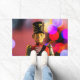 Christmas toy soldier figurine SlipperyJoe gay pride gifts LGBTQIA colourful bokeh lights background vibrant coloured red jacket uniform gold buttons shoulder epaulets cartoonish face artistic black hat gold eagle emblem pink purple yellow red festive atmosphere