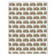 Patterned tablecloth with a cute and whimsical Christmas theme. A cosy trailer decorated for Christmas set among some pine trees.