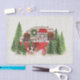 Tissue paper with a cute and whimsical Christmas theme. A cosy trailer decorated for Christmas set among some pine trees.