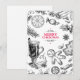 Christmas mood greeting card. Winter traditional treats. Illustration with holly, mistletoe, poinsettia, pine cone, mulled wine, fir tree. Xmas food. Holiday black and white drawing
