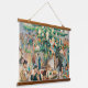 The polyester fabric displayed many wrinkles and several sharp creases throughout. At the bottom of the tapestry, I noticed a bulge in the fabric because it was not pulled tight enough before being connected to the wooden boards. It took me over an hour to spay water on the tapestry before putting it on an ironing board where I used a warm iron over a polyester cloth to remove the wrinkles and creases in the material. I was able to get out the wrinkles and creases that made that tapestry look as beautiful as its picture.