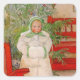Cute little girl in a furry white coat, hat and muff. Standing in front of a Christmas tree with a solemn expression on her face. Vintage holiday image by Swedish artist Carl Larsson.