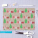 A tissue paper designed with Christmas trees and gifts on a beige background. Merry Christmas!