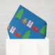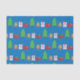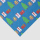 A tissue paper designed with Christmas trees and gifts on a blue background. Merry Christmas!