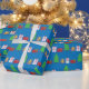 Christmas Tree and Gifts on Blue Wrapping Paper
