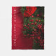 Christmas Tree And Red Berries On Red Background Fleece Blanket