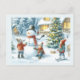 Christmas Tree and Snowman Holiday Postcard