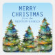 Festive Artistic Christmas Tree Watercolor Merry Christmas Family Sticker. Artistic watercolor drawing of a colourful Christmas tree with snow and blue sky and a Merry Christmas wish. Add your text and family name.