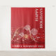 Bring the spirit of Christmas to your home or office with this beautiful banner in red, white and faux gold featuring vertically placed ribbon strands which have white tree baubles and scattered snowflakes around them. The festive holiday greeting "Happy holidays" appears to the right of the design and the left edge has a template for your company or family surname. This backdrop is ideal for corporate year end wishes (add your logo to the open space above your Xmas saying) to clients or for your family greeting to friends and family members.
