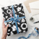 Christmas Tree Bells Wreath Holly Black Wrapping Paper