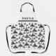 Christmas Tree Black and White Pattern Name Apron. Personalised holiday apron with a modern black and white Christmas tree pattern. Customise with your name.