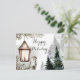New Year's card happy holidays card in pastel colours it depicts: an owl, a Christmas tree branch, a lantern with a candle, a forest. watercolor technique