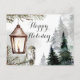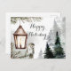Christmas tree branch, a lantern with a candle holiday postcard