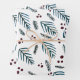 Christmas tree branches and berries - dark teal Wrapping Paper Sheets