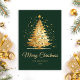 Christmas Tree Chic Elegant Minimalist Green Gold Holiday Card