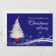 Funny looking white Christmas tree on a blue snowy background. Very cute and fun Christmas party invitation.