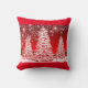 White Christmas Trees, Red Background, Pretty, Stars Polyester Throw Pillow 16" x 16"