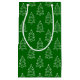 A gift bag built with a white Christmas tree pattern on a dark green background. Customize the dark green background color, pattern size among other options.