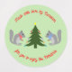 This awesome set of Christmas Favour labels features a digital art image of a pair of cute squirrels decorating a Christmas tree with brightly coloured hazelnuts. The tree is green with a yellow star on top and each squirrel is holding a Hazelnut to eat and wearing a scarf to keep warm in the cold winter. There is custom text so you can personalise this design with your own message.
