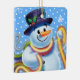 Square Christmas tree decoration Snowman and tinsel. Blues.