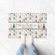 This Christmas tree doormat with Christmas trees designed in a modern Swedish minimalist style in classic red and green colours. There are 8 different Christmas trees total, some with holiday ornaments and some without. There is also a little red birds floating around the design too. You can make the pattern smaller or bigger on this doormat. Personalise this doormat with your family name and your own greeting.