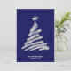 A modern elegant blue and silver foil Christmas tree card. Personalise with your name or family name, and the year.