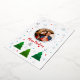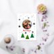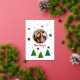Simple and modern Christmas card with green spruce trees adorned with snowflakes and red and blue dots creates a serene and magical atmosphere. Fluttering among the trees are delicate snowflakes, sparkling in light blue and grey. Subtle holiday touch is added with bursts of vibrant colour in the form of red and blue dots, reminiscent of cheerful ornaments adorning a Christmas tree. These dots add a playful contrast against the snowy landscape, evoking feelings of joy and festivity. This elegant holiday card captures the essence of the holiday season, combining the natural beauty of winter with the warmth and cheer of Christmas celebrations.