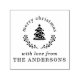 Custom designed greeting stamp featuring Christmas greeting message on top of Christmas tree and berries.