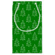 A gift bag built with a white Christmas tree pattern on a green background. Customize the green background color, pattern size among other options.