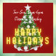 Festive window cling sign for retail, restaurant or other business, featuring a decorated Christmas tree with "Happy Holidays " neon text. Additional text in white is customisable and can include business hours or other related information.