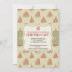 A background of crimson stylised Christmas trees against a distressed cream makes a festive background for this holiday party invitation. A decorative frame placed on a sage green ribbon holds party information. Perfect for a corporate holiday party or a tree trimming party at home. Available in alternate colours with matching products.