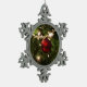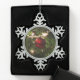 Christmas Tree I Holiday Pretty Green and Red Snowflake Pewter Christmas Ornament