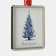 Add a touch of elegant winter charm to your holiday décor with this customisable metal ornament featuring a beautifully illustrated Delft blue and white Christmas tree. The sophisticated design captures the festive spirit with intricate swirling patterns and ornaments reminiscent of a frosty winter scene. The cool Delft blue hues contrasted against the crisp white create a stylish and timeless aesthetic. Personalise this metal ornament with a family name, a special date, a short holiday message, to create a unique keepsake that will be treasured for years to come. Crafted from durable metal, this ornament is a lasting addition to your Christmas tree or a thoughtful personalised gift.