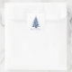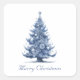This elegant sticker features a beautifully illustrated Christmas tree in shades of soft Delft blue and white, reminiscent of delicate winter frost. The tree is adorned with intricate swirling patterns and various ornaments, including snowflakes, baubles, and a star at the top. The "Merry Christmas" text is displayed in a graceful Delft blue script below the tree. This design offers a customisable text field underneath "Merry Christmas," allowing you to add a personal message, family name, or the year, making it perfect for personalising holiday cards, gifts, or decorations with a touch of Delft blue charm. The cool blue tones and festive imagery evoke a serene and stylish holiday spirit.