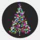 The lights of a Christmas tree form a stunning bokeh effect in shades of pink, blue, green and purple on black.