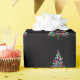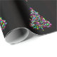 The lights of a Christmas tree form a stunning bokeh effect in shades of pink, blue, green and purple on black.