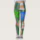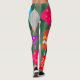 These leggings have a design that looks like ornaments in red, green, blue, pink, gold, silver, and white on a Christmas tree.