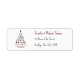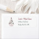 To the left of the printed return address, there is a Christmas Tree made of vintage toys: dolls dressed in red, green or white,, toy horses, teddy bears, monkeys, elephants and clowns and also red candles. At the basis, there is typography: the message "Merry Christmas" written in an elegant red calligraphic script and under it, the name in red hand letters.