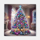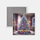 Magnet is shown with a beautiful festive Christmas tree art print.