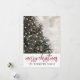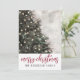Christmas tree merry Christmas with glowing lights and a vibrant modern script typography Christmas holiday card. Add your family name.