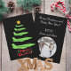 Design features a minimalist illustration of a Christmas tree made from green military aeroplanes. The tree is topped with a bright yellow star and the trunk spells out Merry Christmas in red fun font. The back has a heartfelt message of "Merry Christmas and Happy New Year, XOXO, [Names]"- all of which is customisable.