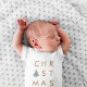 Simple, stylish "Christmas" quote baby bodysuit one-piece with a minimalist sage green christmas tree design and gold text in modern typography. The text can be customised with your own letters for the perfect holiday gift! | #christmas #holidays #apparel #fashion #baby #giftsforbabies
