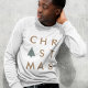 Simple, stylish "Christmas" quote sweatshirt with a minimalist sage green christmas tree design and gold text in modern typography. The text can be customised with your own letters for the perfect holiday gift! The jumper is featured in a trendy ash gray color. | #christmas #holidays #apparel #fashion #mens #giftsforhim
