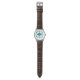 I was uncertain about the size being too small but it looks good. The case looks like aluminum (not shiny) and the time is easy to see. I changed the band because the leather doesn't go with my lifestyle.a. Exactly what I expected, nice yellow. It grabs peoples attention.
