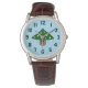 A watch with a cute festive Christmas tree mushroom and matching numbers.